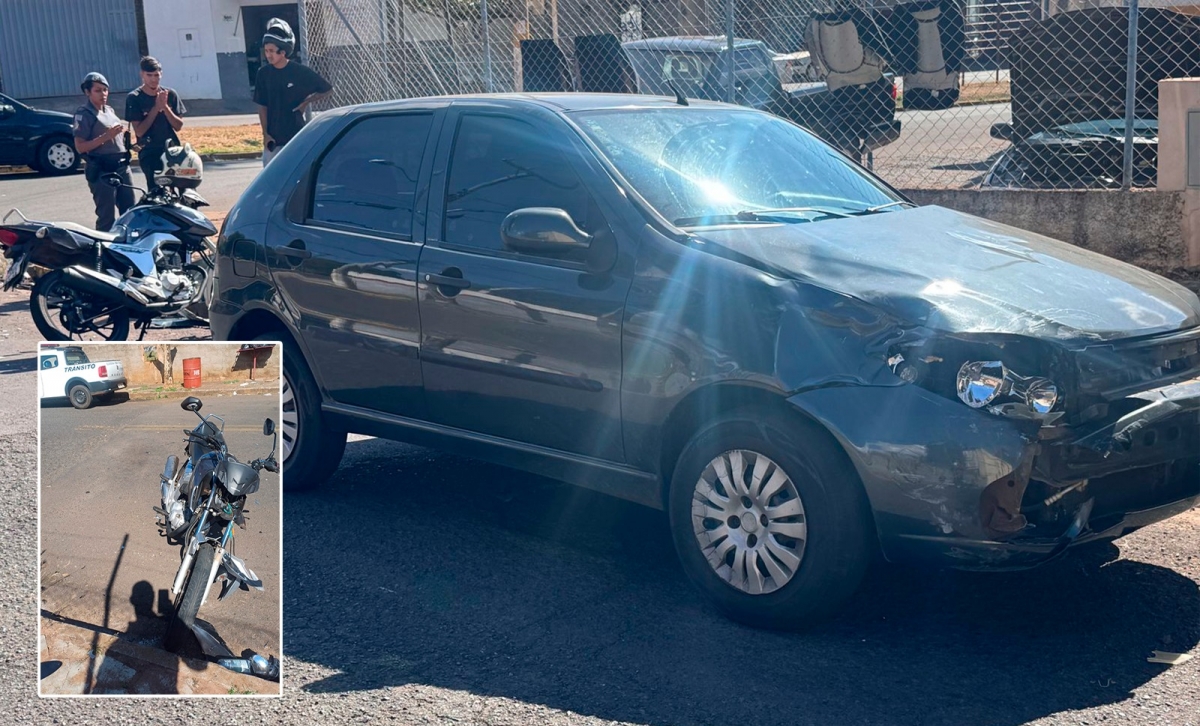 Na tarde desta quarta-feira (6), um acidente de trânsito envolvendo um Fiat Palio e uma motocicleta Honda CG 160 foi registrado no cruzamento da Rua Curitiba com a Avenida Brasília, no bairro Parque das Nações, em Fernandópolis.