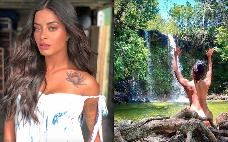 Aline Riscado abalou as estruturas e dispensou o biquíni ao posar em cachoeira no Jalapão, em Tocantins. Nua, a musa aparece reverenciando a queda d’água com os braços erguidos. Além das tatuagens nas costas e no quadril, a beldade deixou as curvas da silhueta torneada em evidência. Na legenda, postou “textão” exaltando a viagem, que está terminando.