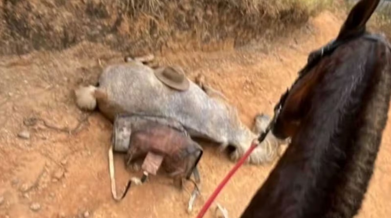 Consta no boletim de ocorrência que, em depoimento, a testemunha afirmou que ele e o tutor estavam em uma cavalgada, cada um com um cavalo, quando o cavalo branco ficou cansado, parou de andar e deitou no chão.