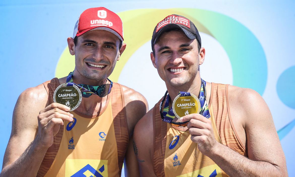 A dupla André e George faturou neste domingo (27) a primeira etapa do Circuito Nacional de Vôlei de Praia, disputada em Saquarema, no Rio de Janeiro (RJ). Na final, os campeões da temporada passada venceram por 2 sets a 0 (parciais de 21/18 e 21/13) os parceiros Guto e Arthur.