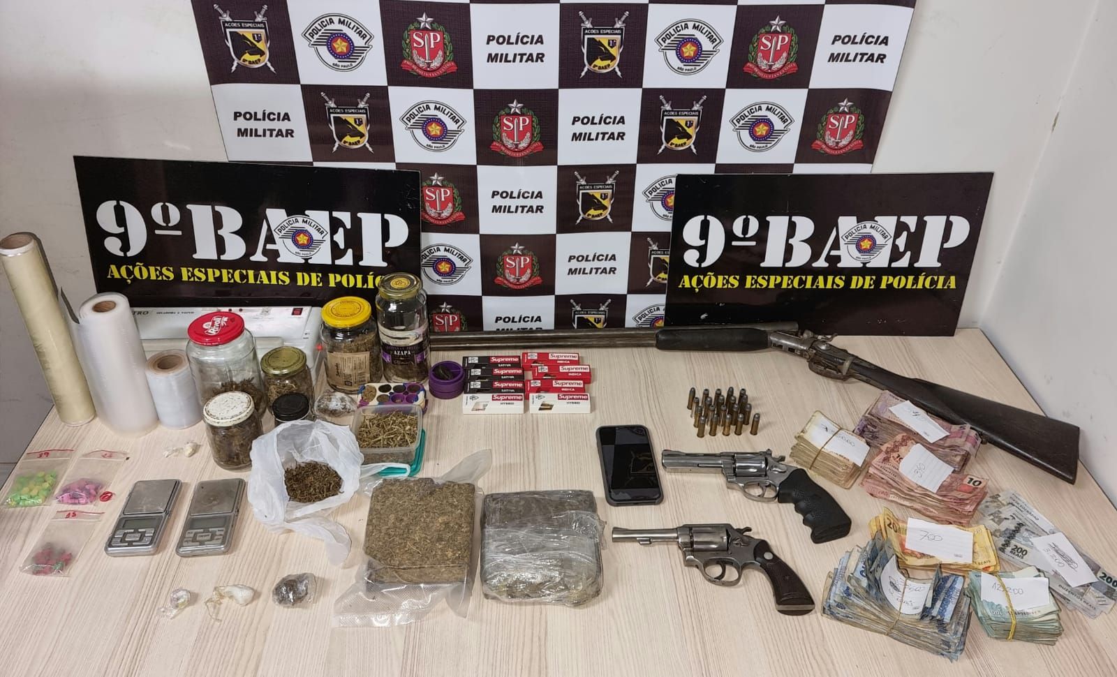Policiais do 9° Baep (Batalhão de Ações Especiais da Polícia) apreenderam mais de 70 comprimidos de ecstasy, vários tipos de maconha, armas e R$ 24 mil em dinheiro nesta sexta-feira (14), na zona norte de São José do Rio Preto (SP).