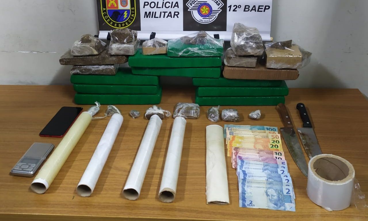 Na casa, os policiais encontraram R$ 282 em dinheiro, mais de 10 quilos de maconha, 94 gramas de raxixe, uma balança de precisão, plástico filme, faca e um aparelho celular.