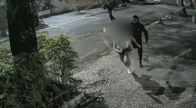 Dois criminosos usando um táxi assaltaram e agrediram uma mulher na noite de quarta-feira (9), no Maracanã, Zona Norte do Rio. Toda a ação foi registrada por câmeras de segurança da região.