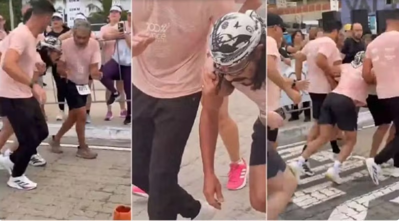 Bell Marques teve um mal-estar quando cruzava a linha de chegada de um percurso de 10 quilômetros. Ele recebeu apoio de outros corredores que estavam próximos.