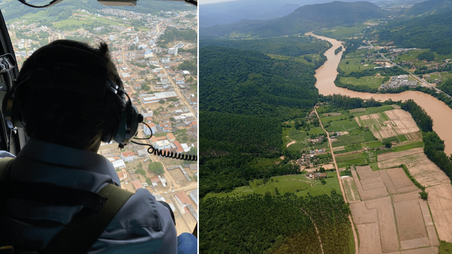 O ex-presidente Jair Bolsonaro (PL) sobrevoou nesta 6ª feira (13.out) as áreas atingidas pelas intensas chuvas em Blumenau, no Vale do Itajaí, em Santa Catarina. Ele estava acompanhado do governador do Estado, Jorginho Mello (PL).