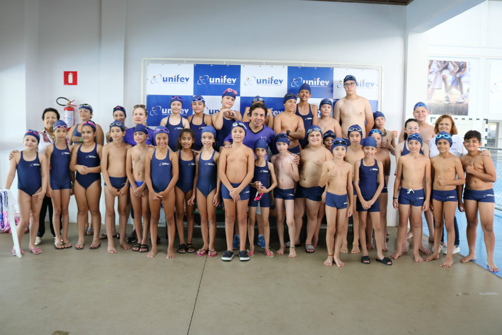 Na manhã do último sábado (dia 7), o Complexo Poliesportivo da Cidade Universitária sediou o 2° Campeonato de Natação do Colégio Unifev. Os alunos dos ensinos fundamentais I e II puderam mostrar seus talentos de nado aos familiares e receber deles as medalhas de participação.