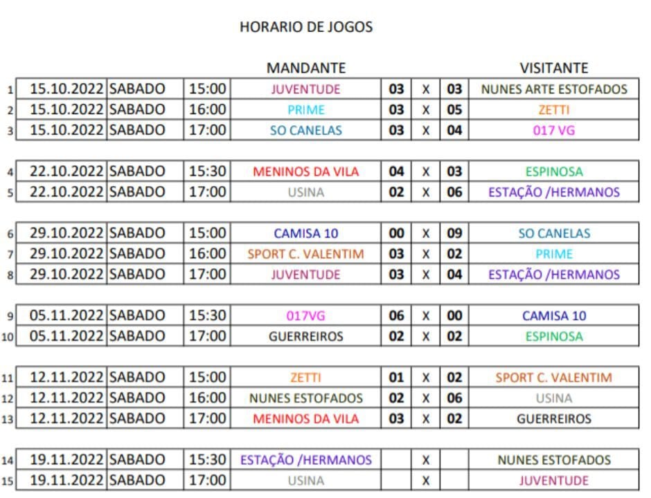 Jogam no sábado Estação/Hermanos e Nunes Estofados às 15h30 e às 17h entram em campo Usina e Juventude.
