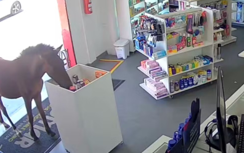 “Eu estava sozinha, quando o potro entrou na farmácia e foi direto para a caixa de promoções, que fica na frente da loja. Eu fiquei com medo de estressar o animal e liguei para um colega para tirar ele de lá”, disse Lucy Kelly de Souza ao g1.