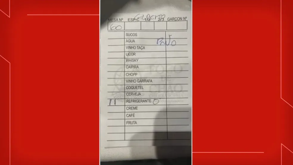 Ele diz que entrou em contato com o restaurante, mas que o estabelecimento afirmou que “não foi ninguém da equipe que escreveu na comanda” porque “não usavam caneta de tinta azul”. Gilberto lembra que, ao deixar o estabelecimento, se sentiu “triste e angustiado”.