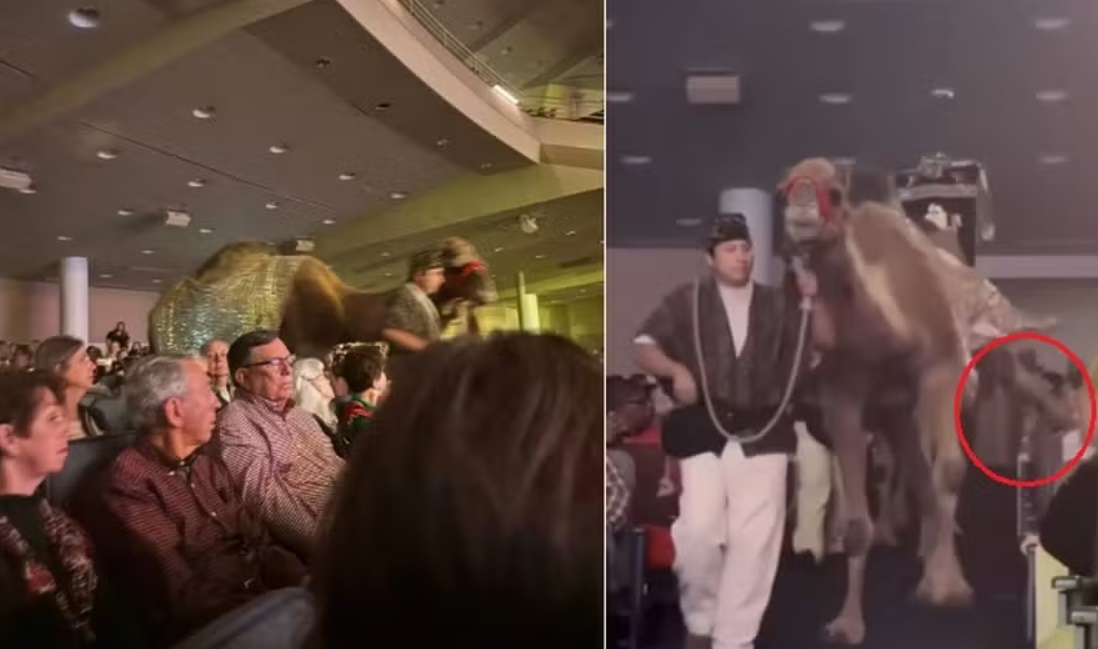 O diretor de comunicação da igreja, Steven Miori, disse à NBC News que “um incidente inesperado ocorreu quando um camelo usado na produção atingiu uma pessoa da plateia”.