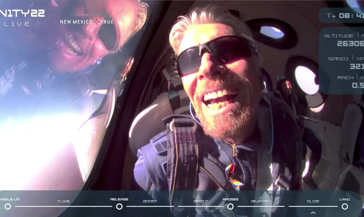 Branson, semanas atrás, voou mais de 50 milhas acima do deserto do Novo México a bordo do foguete da Virgin Galactic e retornou com segurança, no primeiro voo de teste totalmente tripulado do veículo ao espaço. O voo foi um marco para um empreendimento iniciado há 17 anos.