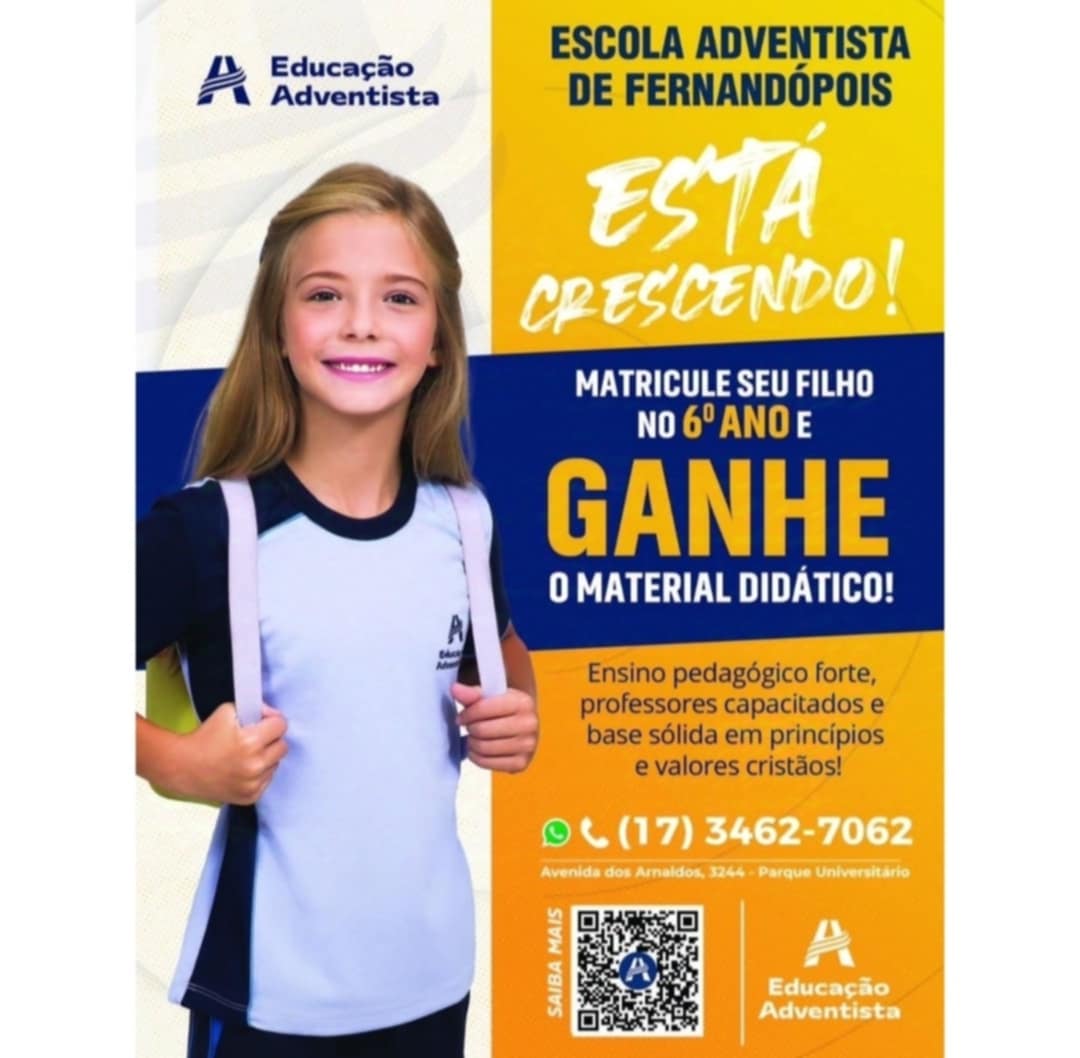 A Educação Adventista, reconhecida há mais de 128 anos pela excelência em formação humana fundamentada em princípios bíblico-cristãos, anuncia a expansão de sua unidade em Fernandópolis. A missão da instituição é promover o desenvolvimento integral dos estudantes, formando cidadãos autônomos, comprometidos com o bem-estar da comunidade, da pátria e com Deus.