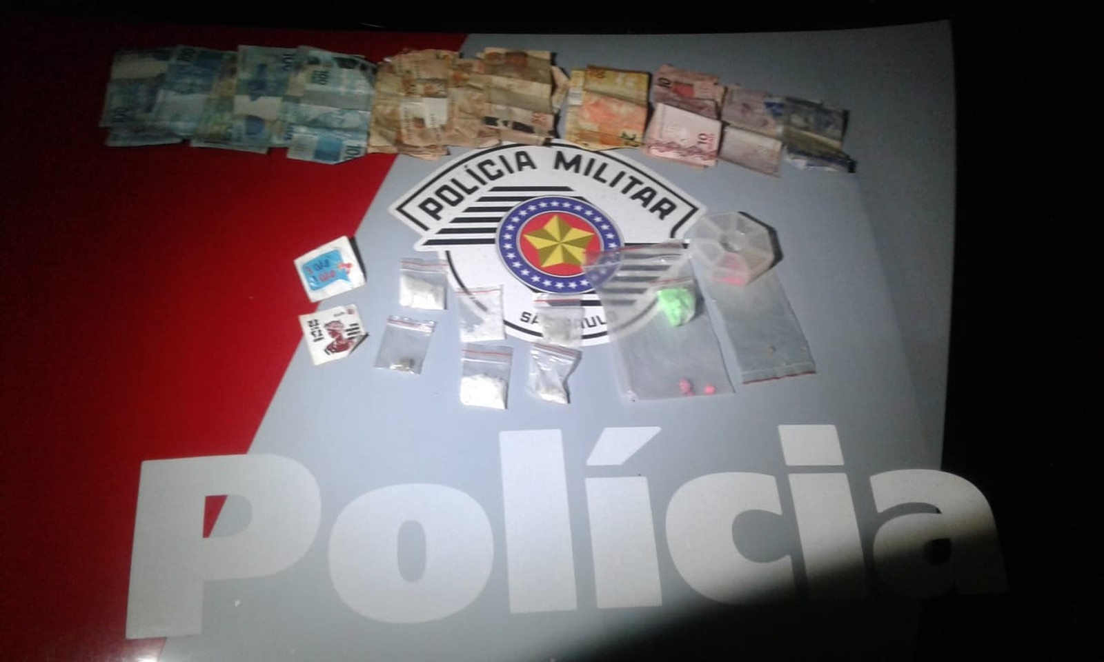 Com o rapaz, os policiais apreenderam 20 comprimidos de ecstasy, sete porções de uma droga sintética e mais de R$ 1,4 mil em dinheiro.
