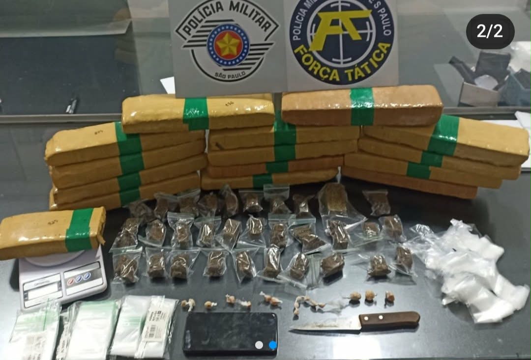 Uma operação da Força Tática da Polícia Militar, realizada com o objetivo de combater organizações criminosas e o tráfico de entorpecentes, resultou na prisão de um homem de 25 anos e na apreensão de uma carga expressiva de drogas em Paranapuã.