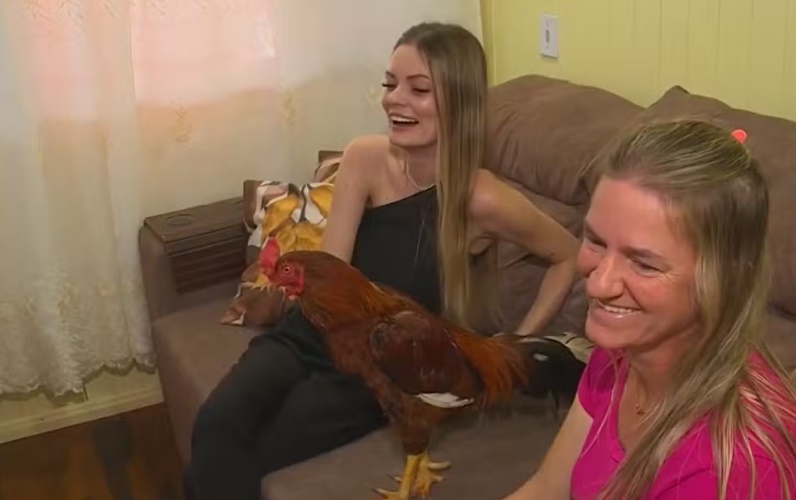 Pipo chamou a atenção delas por ser calmo e carinhoso, bem diferente de outros galos que já tinham conhecido. O animal logo passou a dividir não só os cômodos da casa, mas a estar sempre presente nos colos, ganhando carinho em suas penas, e até fazendo companhia no sofá da sala.