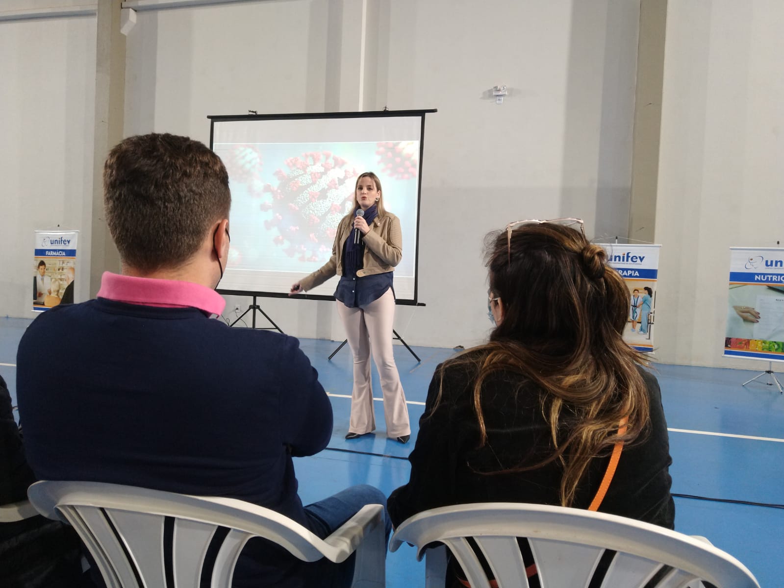 Estudantes de cinco cursos da UNIFEV participaram, na última segunda-feira (dia 16), do X Congresso Interdisciplinar da Saúde da Instituição. O evento, que aconteceu no Complexo Poliesportivo da Cidade Universitária, abriu as semanas acadêmicas das graduações de Biomedicina, Enfermagem, Farmácia, Fisioterapia e Nutrição.
