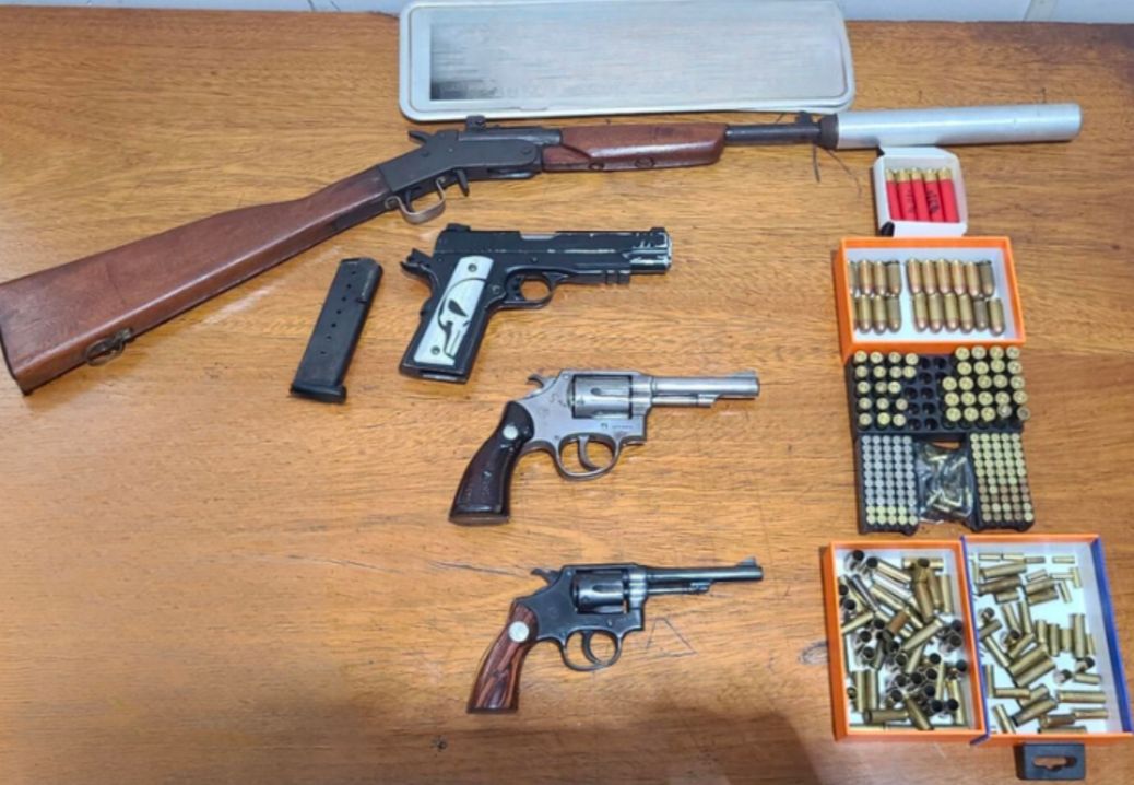 No local, localizaram o envolvido e, além do automóvel furtado, encontraram com ele peças de motocicletas, armas de fogo e munições.
