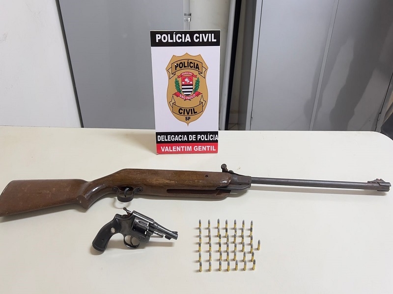 A Polícia Civil de Valentim Gentil cumpriu ordem judicial e prendeu um homem com armas de fogo na casa dele.