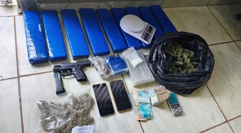 No local, os policiais encontraram 20 pés de maconha, aproximadamente 8 kg da mesma droga já processada e 1 kg de cocaína, escondidos em diversos cômodos da casa.