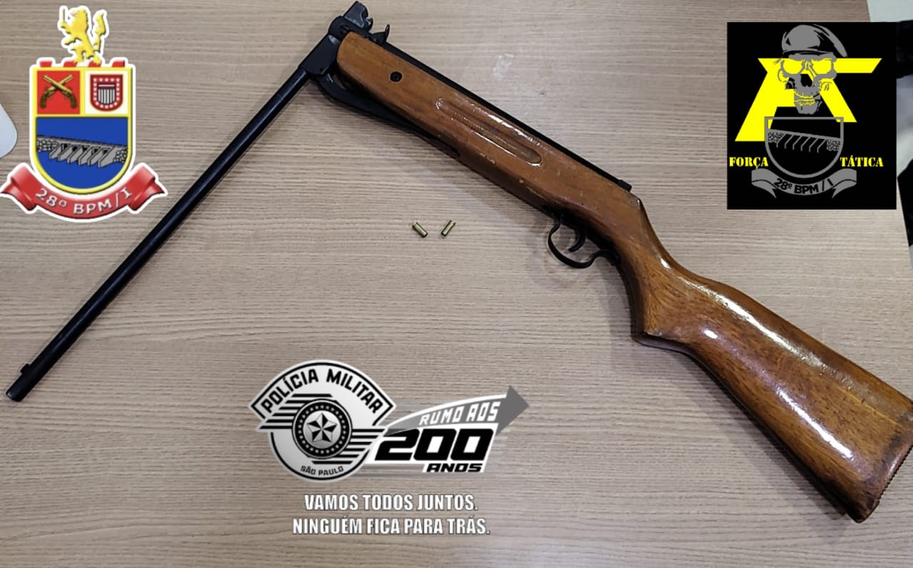 Questionado, o suspeito, que trabalha como pintor, confessou ter uma espingarda de pressão que havia sido modificada para disparar munição de calibre .22. Com a autorização da mãe do rapaz, os policiais realizaram uma busca na residência e encontraram a arma no quarto dele.
