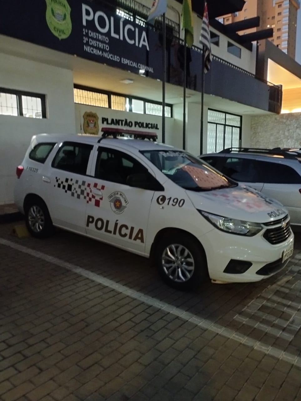Ao chegarem ao local, os policiais encontraram o agressor em frente à loja. Ele afirmou ter ido até lá para pedir a devolução de um veículo, mas, diante da gravidade das ameaças, foi dada voz de prisão. Ele teve seus direitos constitucionais lidos e foi levado ao Distrito Policial sem o uso de algemas.