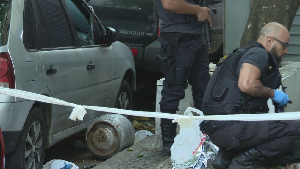 Além do botijão, o suspeito jogou parte de um fogão pela janela.