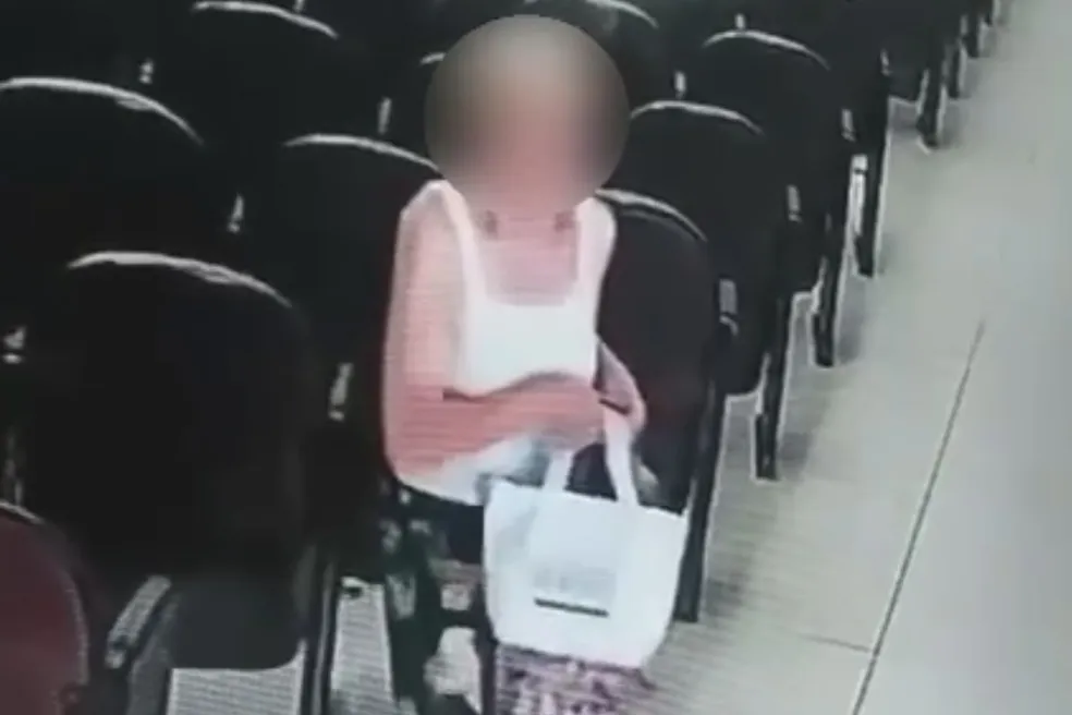 Uma idosa foi flagrada furtando um celular de dentro de uma bolsa na Igreja Universal, no bairro Boqueirão, em Praia Grande, no litoral de São Paulo. Imagens obtidas pelo g1, neste sábado (11), mostram que ela pega o aparelho, o coloca dentro de uma sacola e deixa o local.