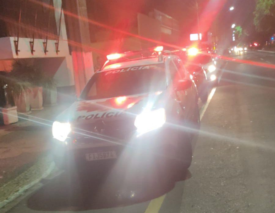 As equipes da polícia se deslocaram imediatamente para o local e conseguiram abordar o suspeito na calçada.
