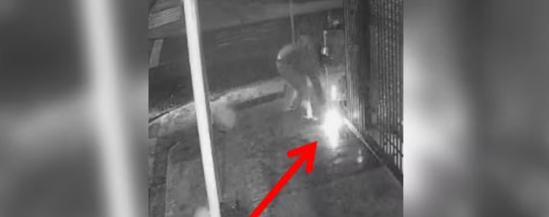 As imagens mostram dois suspeitos chegando ao estabelecimento em uma motocicleta. O indivíduo na garupa desce com dois galões e consegue entrar no serv-festa. Dentro do local, além de pegar dinheiro do caixa eletrônico, ele espalha um líquido, forma um rastro, sai do estabelecimento, ateia fogo e foge na garupa do outro suspeito.