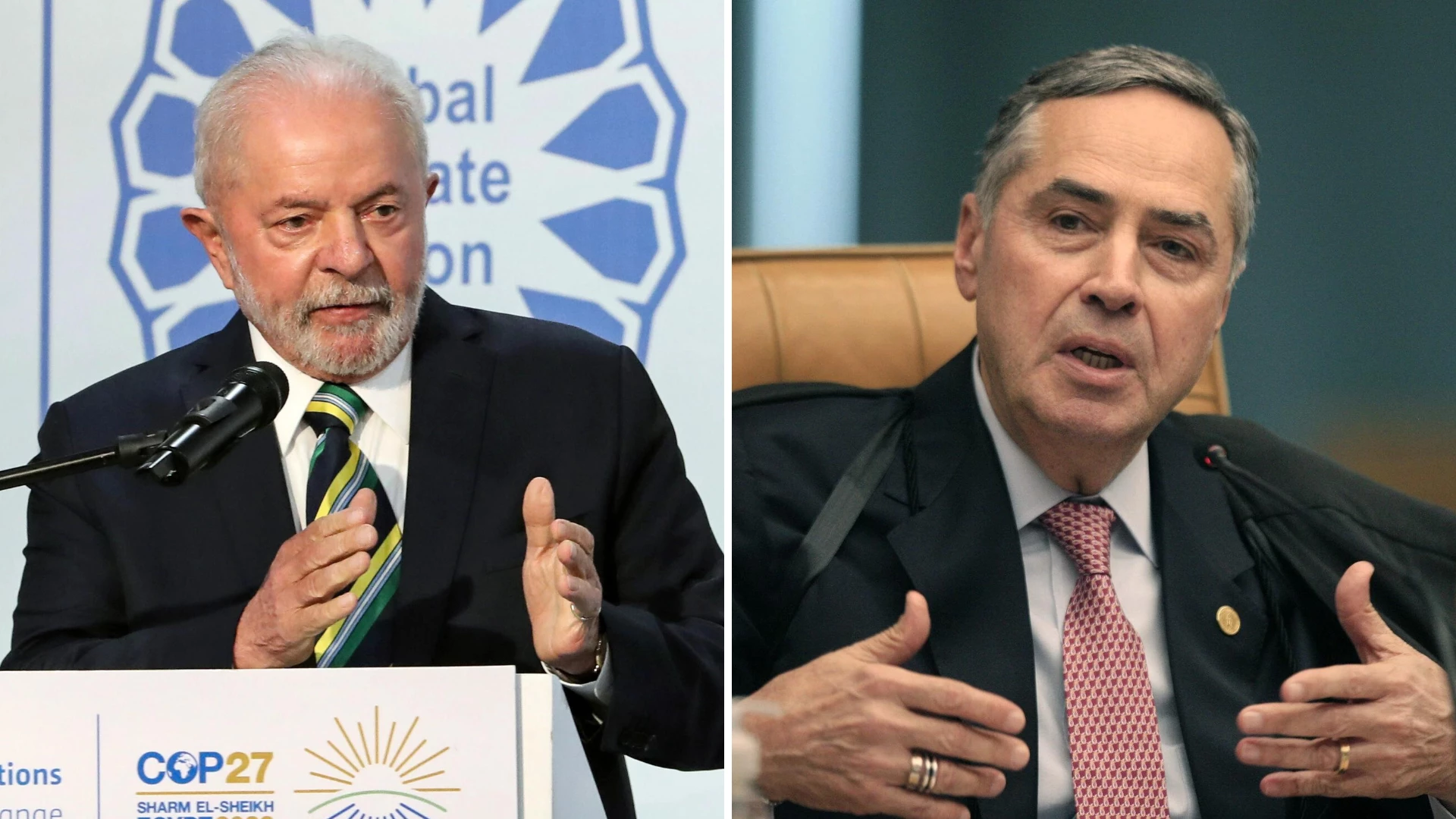 Na entrada do jantar, Barroso conversou rapidamente com a imprensa e disse que o encontro é uma “conversa institucional” solicitada por Lula.