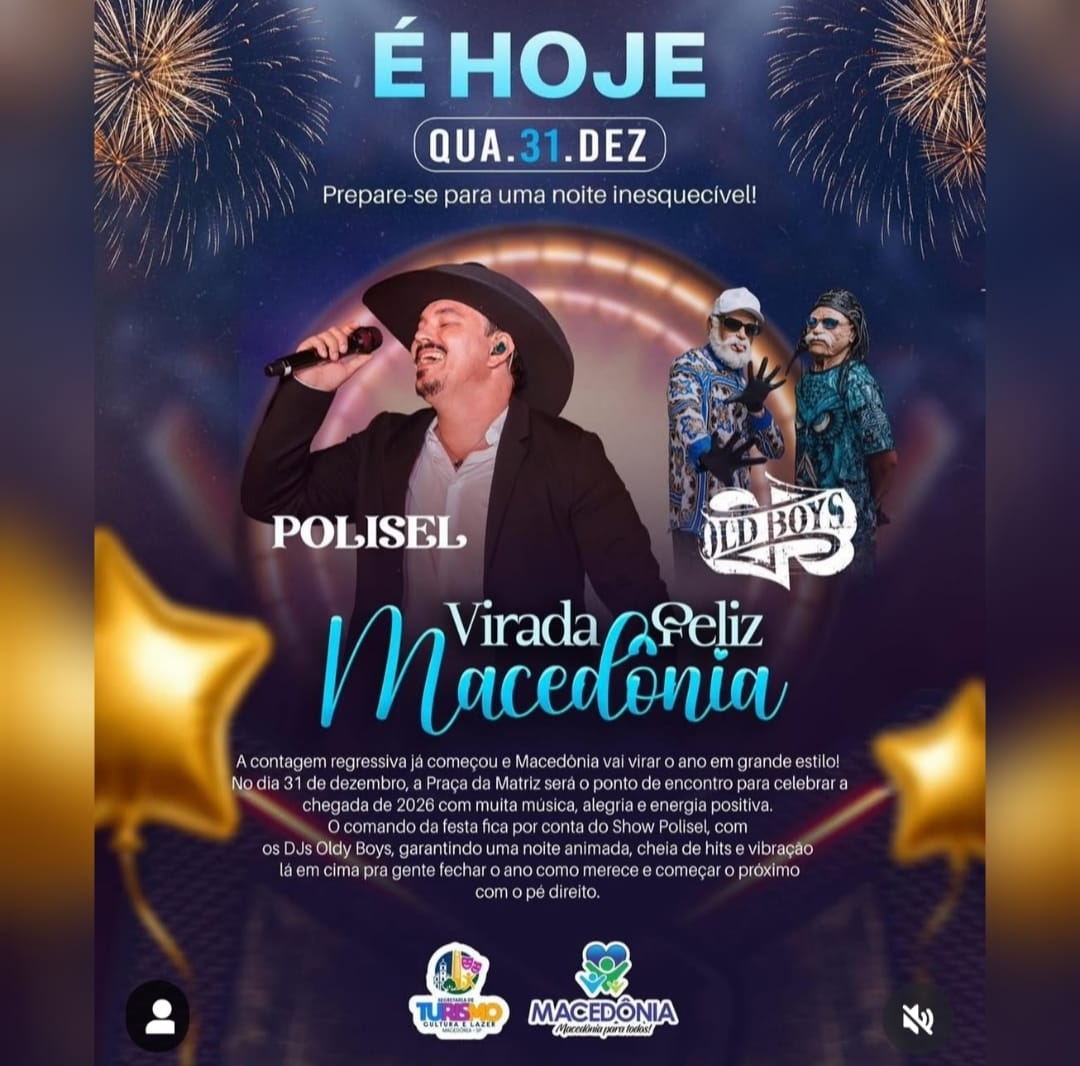 O município de Macedônia se prepara para o grande momento da festa “Virada Feliz” nesta quarta-feira, 31 de dezembro. A Praça da Matriz foi escolhida como o ponto de encontro central para a população se despedir de 2025 e receber o novo ano com um evento focado em união e alegria.