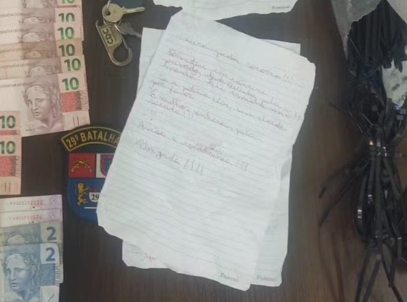 A PM foi acionada por um morador do condomínio que relatou ter encontrado os bilhetes com pedido de socorro. Em um deles, estava escrito: