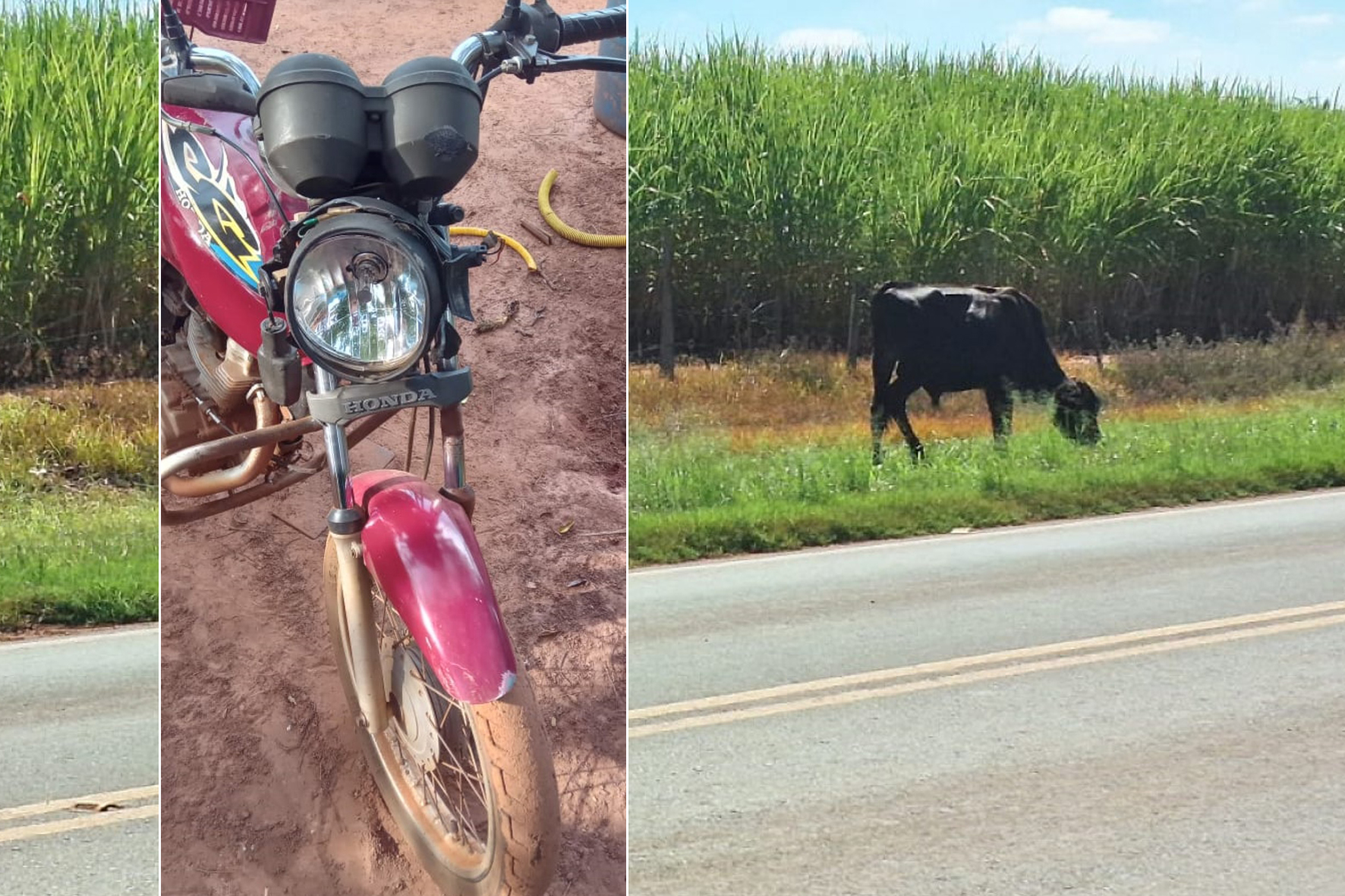 Um motociclista de 31 anos ficou ferido depois de bater contra uma novilha solta na vicinal Ângelo Micheletti, que liga Potirendaba à Nova Aliança (SP), quando estava indo trabalhar.