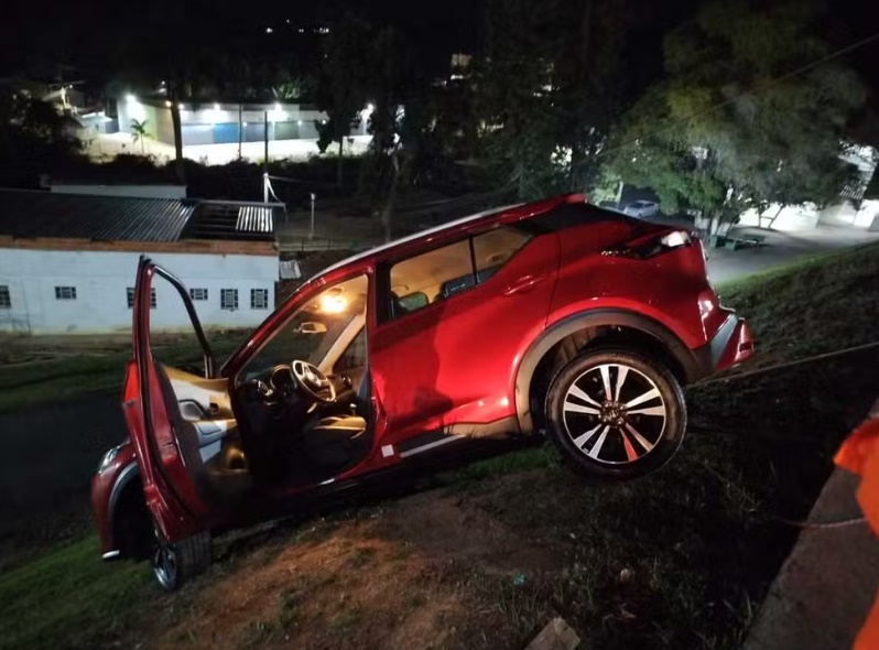 O Corpo de Bombeiros evitou por pouco a queda de um carro com uma idosa, que ficou suspenso à beira de um barranco de cerca de 10 metros, nas dependências do Hospital Ana Nery, no Bairro Grama, em Juiz de Fora, na noite de terça-feira (15).