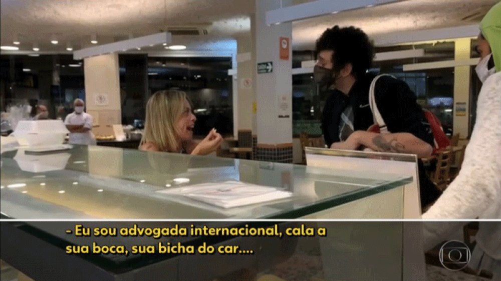 As imagens também mostram o artista Ricardo Boni Gattai Siffert, de 24 anos, sendo xingado por Lidiane com ofensas homofóbicas. Agredido por ela, ele não reagiu.