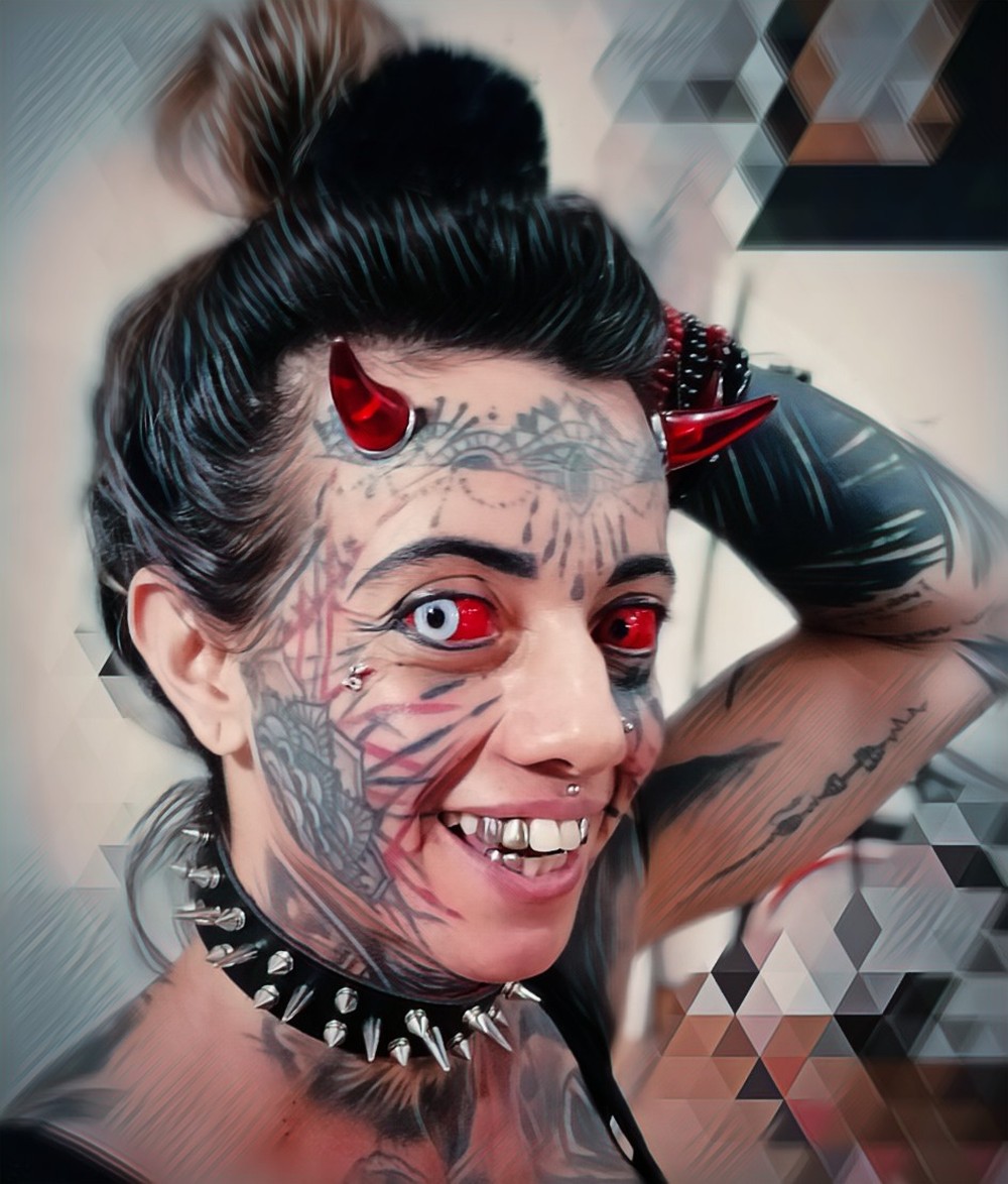 Uma mulher de 35 anos vem transformando seu visual radicalmente há três anos, com cerca de 60% do corpo tatuado e alterações na língua, olhos, dentes e na testa. Em entrevista ao G1 neste sábado (3), a modificadora corporal Carol Praddo, moradora de Praia Grande, no litoral de São Paulo, diz que tem orgulho de ser conhecida no ramo como a mulher demônia.