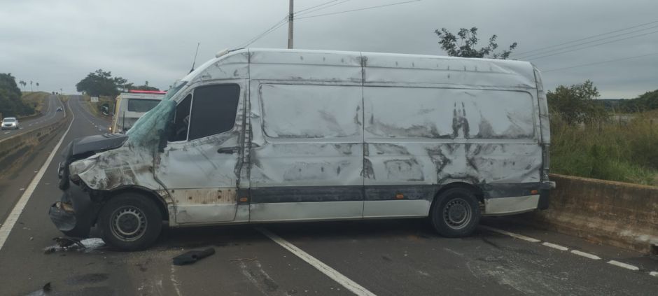 No local constatou que uma mulher conduzia um Furgão no sentido Santa Fé a Aparecida do Taboado, momento que perdeu controle do veículo, vindo a chocar contra mureta no canteiro central e na sequência tombou sobre a faixa de rolamento da rodovia.