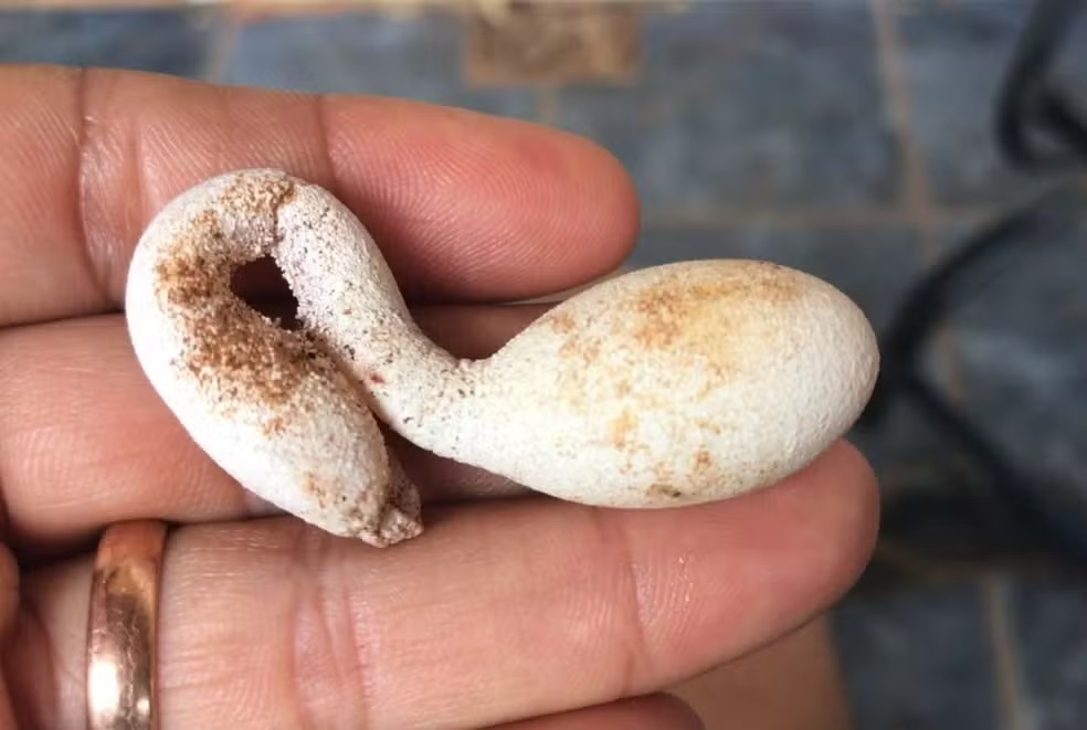 Segundo Edite Agostinho da Silva, o formato do ovo era semelhante aos traços de um pato, e a textura também estava diferente de um ovo “normal”. “Quando eu fui botar comida para as galinhas, cheguei perto da vasilha da água, ela se agachou e soltou. Eu chamei a minha menina [filha] para olhar. A gente nunca tinha visto”, disse a agricultora ao g1.