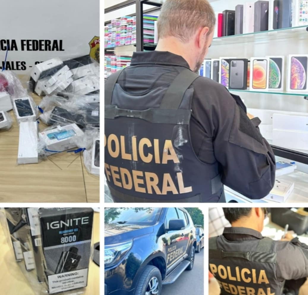 Os mandados foram cumpridos em um endereço comercial e em dois endereços residenciais. Os policiais apreenderam nos locais várias mercadorias de origem estrangeira, principalmente celulares, desacompanhados de documentos de importação, os quais constituem possíveis objetos de crime de descaminho. Em Fernandópolis, a PF também apreendeu cigarros eletrônicos, produtos cuja comercialização é proibida, com conduta criminosa expressa no artigo 334-A do Código Penal e pena máxima de até 5 (cinco) anos de prisão.
