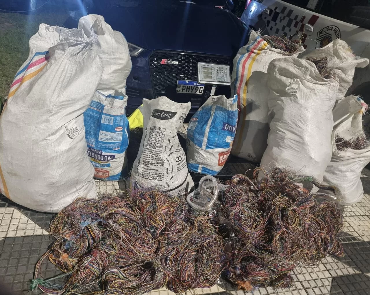 O motorista, de 45 anos, disse aos policiais que trabalhava com recicláveis. No interior do carro, os PMs localizaram os fios em nove sacos plásticos e uma balança. O homem não soube informar a procedência dos fios de cobre. Ele foi levado à delegacia onde foi ouvido e é investigado.