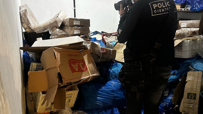 Quando estava apenas um funcionário, os investigadores entraram e solicitaram a abertura das câmeras frias para a verificação, onde foram encontradas diversas carnes e queijos dentro de embalagens em sacos plásticos sem armazenamento adequado e com forte odor.