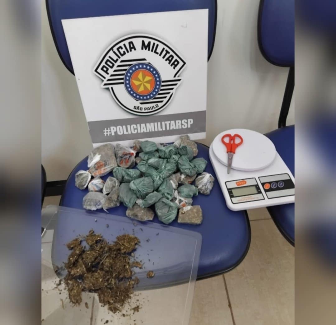 Durante a revista, os policiais localizaram 16 porções de maconha dentro da mochila do homem. Ao ser questionado, ele confessou a prática do tráfico e informou que havia mais entorpecentes em sua residência. Em ato contínuo, a equipe se dirigiu até o local indicado, onde foi realizada uma busca domiciliar. Lá, foram encontradas mais 34 porções da mesma droga, totalizando 453 gramas de maconha. Também foram apreendidos uma balança de precisão e dois aparelhos celulares, além da quantia de R$ 32,00 em dinheiro.
