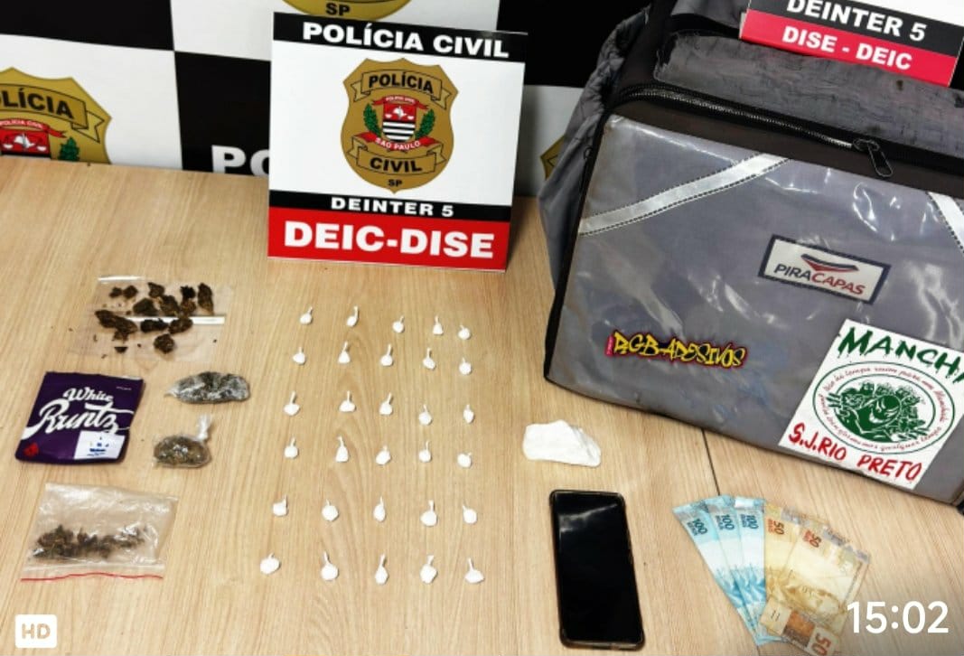 Policiais civis da Divisão Especializada de Investigações Criminais (DEIC) do Deinter 5, por meio da Delegacia de Investigações Sobre Entorpecentes (DISE), prenderam em flagrante na tarde desta sexta-feira (28 de novembro de 2025) um homem de 37 anos por atuar no tráfico de drogas na modalidade “delivery”.