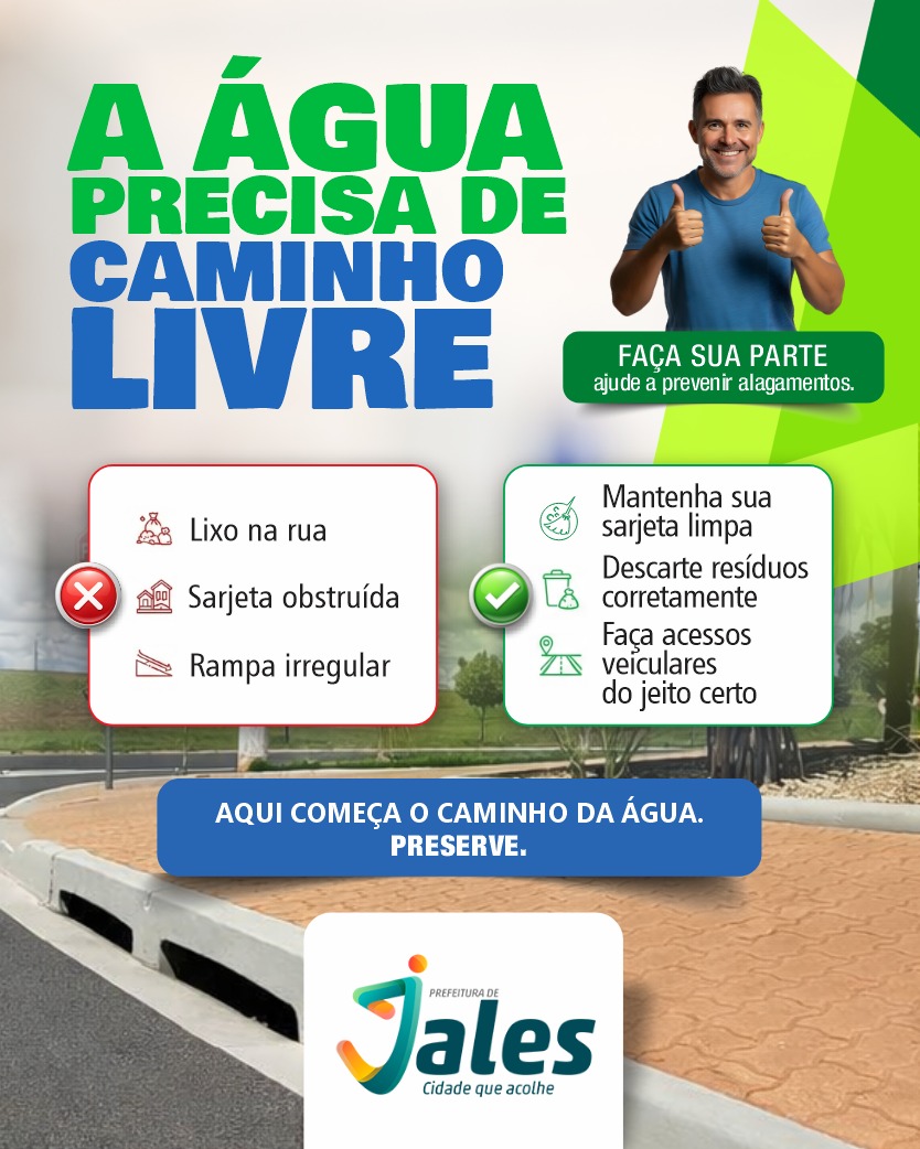 De acordo com o secretário de Obras, Infraestrutura e Desenvolvimento Urbano, Manoel de Aro “a manutenção da cidade é uma responsabilidade compartilhada. Pequenas ações individuais geram grandes benefícios coletivos, contribuindo para uma Jales mais organizada, segura e preparada para enfrentar o período de chuvas. Cuidar da sarjeta também é cuidar da cidade”.