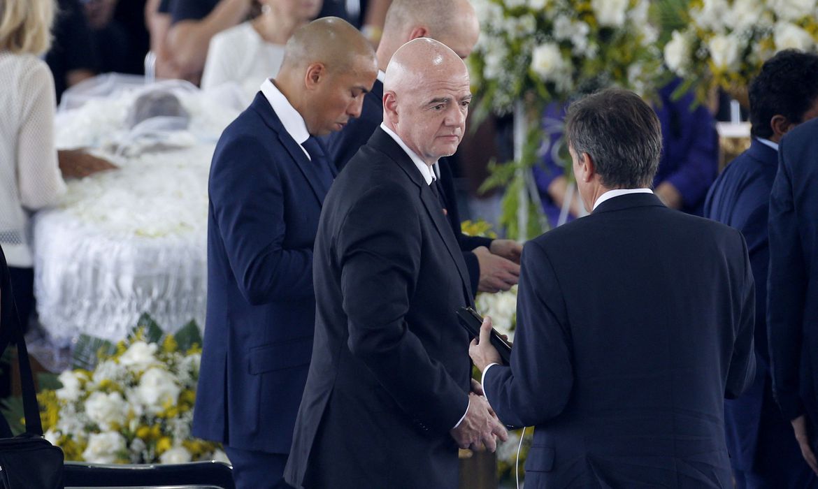“Pelé tinha o dom dos maiores de todos os tempos, algo que poucas pessoas no mundo têm. Um dom de tocar os corações e as emoções das pessoas. É fato que muitas pessoas, como eu, não o viram jogar, mas meu pai sempre falou muito sobre ele para mim”, declarou Infantino.