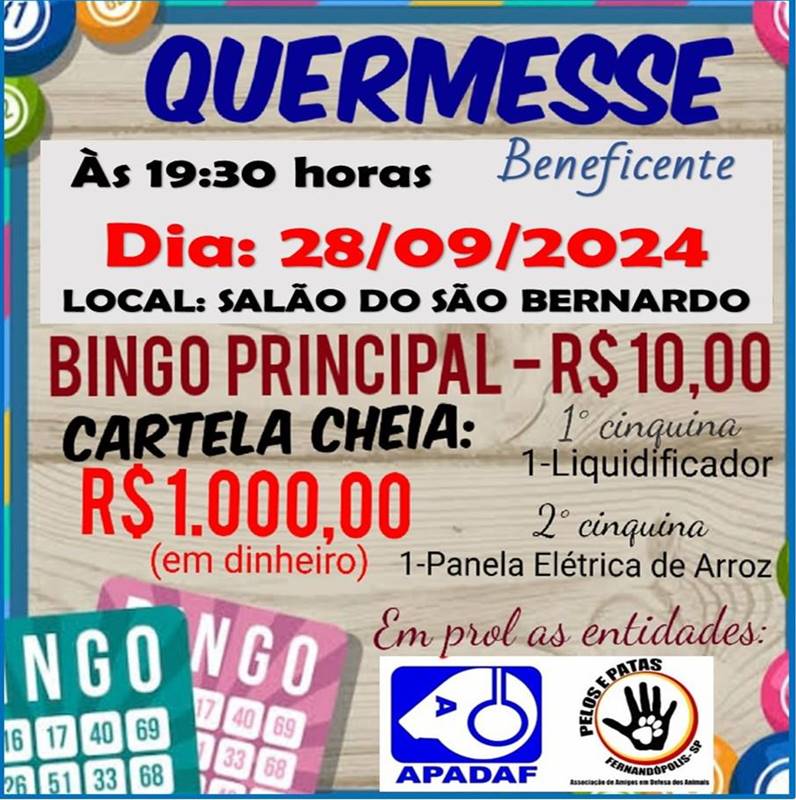 No próximo sábado, dia 28 de setembro, a partir das 19h30, o Salão do São Bernardo será palco de uma grande festa beneficente. A quermesse, organizada pelas associações Pelos e Patas e APADAF, promete reunir amigos e familiares em prol de duas importantes causas sociais.