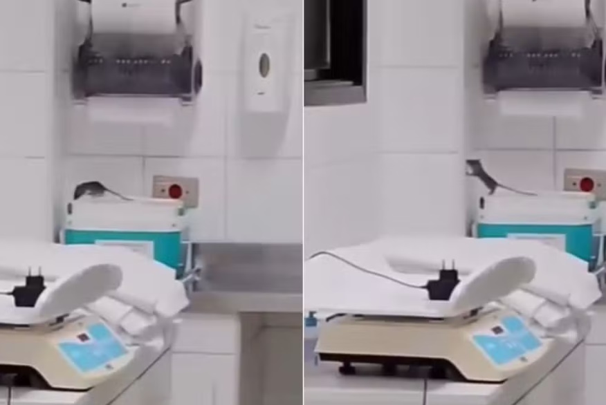 Um rato foi flagrado na sala da maternidade do Hospital Irmã Dulce, em Praia Grande, no litoral de São Paulo. Nas imagens, é possível ver o roedor andando sobre uma caixa térmica, próximo a uma balança usada com bebês recém-nascidos.