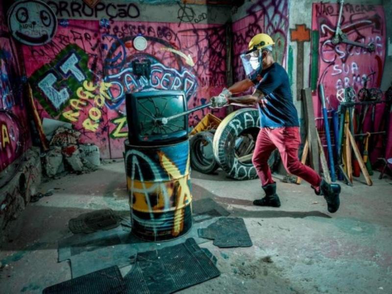 Aí, é só colocar o capacete, os óculos de proteção e luvas, escolher a trilha sonora, pegar o tacos de beisebol, um pé de cabra ou a marreta e, literalmente, descer o sarrafo. A sensação no final: “Muito, muito, muito desestressante. É pra relaxar mesmo”, conta Vanderlei Rodrigues.