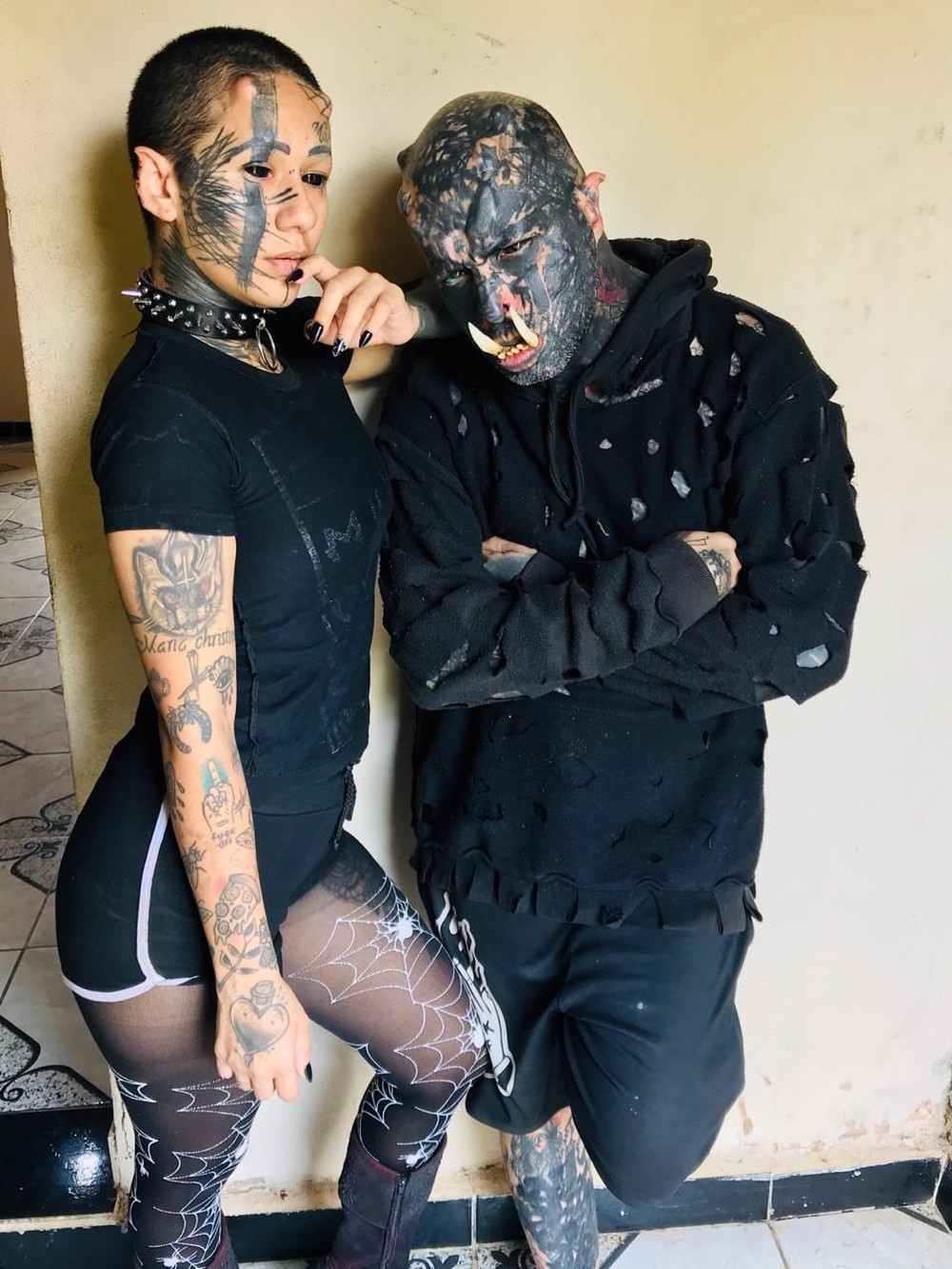 Assim como o marido, a amazonense conta que tinha o sonho de fazer a pintura nos olhos. “Ele fez em mim e daí consegui colocar os dois implantes na testa. Meu esposo fez esse procedimento em mim e também das orelhas de morcego, foi quando me autointitulei a mulher-morcego. Agora eu planejo fazer várias modificações para ficar o mais próximo possível de um morcego. Ainda tem dentes e várias tattoos que pretendo fazer com meu esposo, que me ensinou também esta profissão”, comemorou.