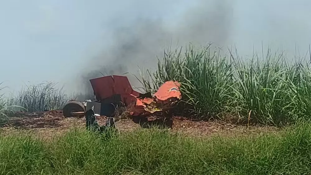 Vídeo feito por uma pessoa que estava na região mostra os destroços da aeronave que caiu: